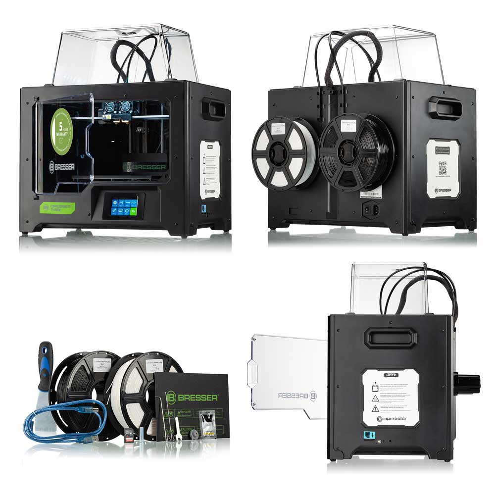 - Stylish. User Friendly. BRESSER T-REX is a stylish and user-friendly 3D printer. The metal frame is secured with injection-molded parts ensuring a solid foundation. Thoughtful design and details include a unibody top cover, external handles, wide opening front access door, durable leveling knobs, a touch control interface, and universal power supply for worldwide voltages requirement. The T-REX comes with EU and GB power plugs.