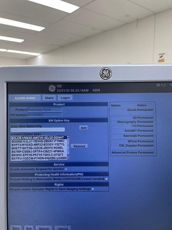 Installed options: DICOM, 4D, Elastography, TVI, AutoIMT, ElastoQA, BFlow, CW_Doppler, Advanced Probes Choice of Probes: M5S-D, 9L-D, ML6-15, C1-5
