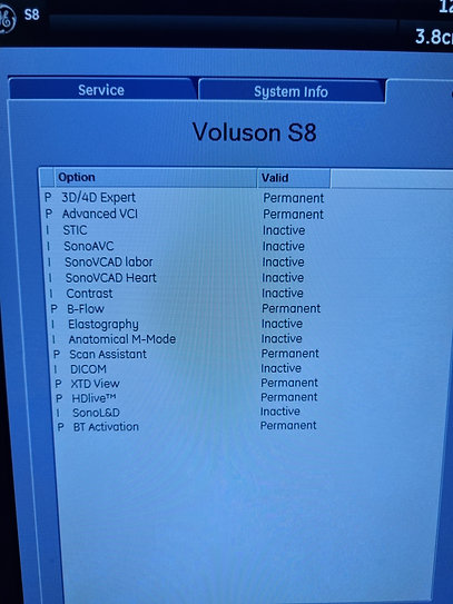 Installed Options: 3D/4D Expert, Advanced VCI, B-Flow, Scan Assistant, XTD View, HDlive, BT Activation