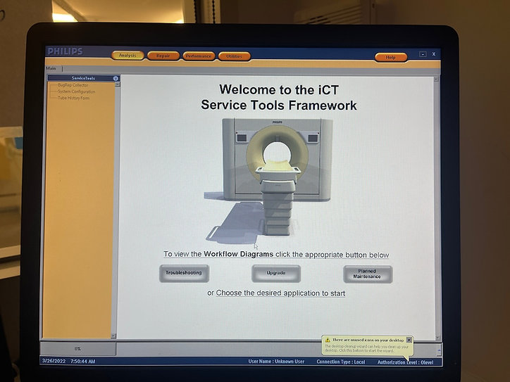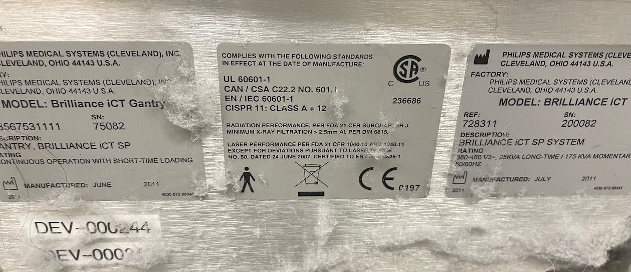 Philips iCT SP 128 Slice CT ScannerManufactured: 2011Current location : USA (EX2796)Tube Type: CT XS TubeTube Replaced: 2013