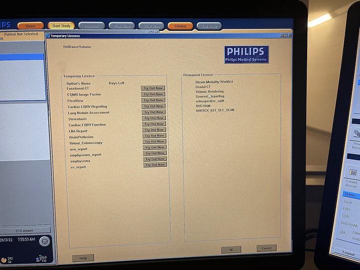 Options: DICOM Modality Worklist, Dental-CT, Volume Rendering, General Reporting, retrospective_Split, DVD-RAM, VORTEX_033_sec_sSCAN